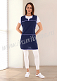Фартук средней длины, перекидной, имеющий спинку без отделки и полочку с отрезными симметричными кокетками. В нижней части полочки расположены вместительные карманы. Объем талии фартука регулируется завязками – поясами. Все срезы фартука обработаны кантом из контрастной капроновой ткани. Фартук предназначен для защиты от общепроизводственных загрязнений.